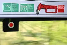 - In the unlikely event of an accident, the windows are usually a means of escape. On some trains, there is a red dot on the upper part of the window and a small hammer next to it. Hit the dot with the hammer to shatter the window and just push it out. On other trains similar systems exist. If railway staff are available, they should always know how to get out through the window, failing that, the process is usually written out somewhere near the window or in a safety brochure.
