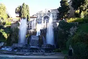 - 🌍 Villa d'Este (near the center of the town.), ☏ 199 766 166 (non-geographic number), +39 0424 600460 (from abroad), villadestetivoli@telekottageplus.com. Closed on Mondays. This is a UNESCO World Heritage Site and a truly unique place. Although the villa is itself quite interesting, with some attractive frescoes on the ceilings, the main reason for visiting here is the terraced gardens below it. These were conceived and built between 1550 and 1572 by Cardinal d'Este. The numerous fountains, both large and small, rely on natural water pressure, which takes advantage of the steep slope on which the gardens are built. Water comes mainly from the River Aniene, which was partly diverted through the town. For a long time in the 18th and 19th Centuries the gardens were allowed to fall into a state of decay, but they were taken over by the Italian Government at the beginning of WW1 and have gradually been restored to something close to their original splendor. The gardens were said to have drawn their inspiration from Villa Adriana and, probably, quite a few of the statues used were stolen from there too. In turn, many were stolen from Villa d'Este when it fell into neglect.
