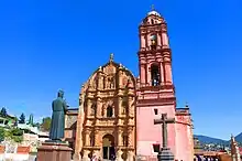 - 🌍 Parroquia de Nuestra Señora del Carmen (Shrine of Our Lady of Carmen, Parroquia de San Pedro y San Pablo), Pbro. Francisco Aguilera 1, Centro, ☏ +52 711 158 1111. 17th-century baroque church with pink granite facade and a stunningly elaborate interior full of stained glass, statues, intricate architectural details and color everywhere. The detailed artistic sculpturing of the church walls was created in the late 19th and early 20th century by artist Joaquín Orta Menchaca. It features unusual vegetable and plant motifs. Even in a country full of spectacular churches, this one stands out. Hilltop location makes for excellent views of the town.