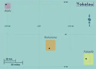 Tokelau is a group of three atolls in Polynesia, north of Samoa, about halfway between New Zealand proper (which administers the territory) and Hawaii.