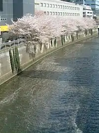 During cherry blossom season, the trees by the normally rather drab Meguro River bloom pink and Japanese congregate to picnic and drink by the riverside.