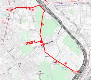 | Routes through Ueno |