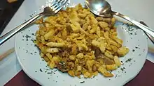 - 🌍 Meson de la Orza, Calle de Descalzos, 5, ☏ +34 925 223 011. M-Sa 13:30–16:00, 08:30–23:00. Great food, great service, not so cheap, but it is worthy. Dishes include; lomo de orza, pork tenderloin; migas, a traditional Spanish breadcrumb dish served with lamb sweetbreads; roast suckling lamb and pig; partridge on arroz meloso; and vanilla-infused fried milk pudding. Wine list of 100 wines.