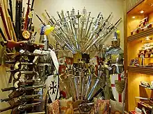 The gold and black enamel work by local artisans is known throughout Spain. Many shops in Toledo sell decorated plates, shields, spoons and key rings.