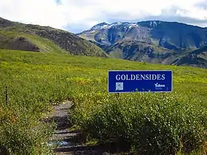 Goldensides Mountain Trail (coloured on map) is a 5-km (return) medium-difficulty trail towards 🌍 Goldensides Mountain, though the trail ends just at the base of the mountain. The slopes up towards the base are relatively gentle and the elevation gain is only 215 m (705 ft).
