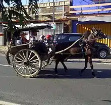 Bendi is a local name for horse-drawn cart, and can be a second option to go around Tomohon. Just like mikrolet, bendi also operates on set limited routes. Only from Tomohon city centre to areas such as Matani, Walian, Kamasi, and Kolongan. This bendi is the old transportation along with cow cart called Roda Sapi. While bendi served for public transportation in the city, roda sapi served the route to the farm or rice fields. The fare for a trip by bendi is Rp 5,000 per person (as of October 2018), and can be chartered up to 4 hours to go around Tomohon area.