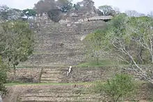 Toniná is an ancient Maya city near Ocosingo in Chiapas. In its day it rivaled Palenque in power. Only discovered in the late 20th century, it provides a great opportunity to see an ancient Maya ruin without being overcrowded with tourists.