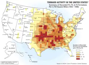 About 1,000 tornadoes are reported each year in the US, but only a small percentage of those touch down and strike buildings. Also, less than 30% of the tornadoes that occur are significantly powerful (EF2+). Most deaths occur to occupants of mobile homes and cars. Tornadoes can occur any time during the year, but they are most frequent in the spring and early summer, in thunderstorm weather. Keep in mind that as a short-term visitor, the odds of you being in the wrong place at the wrong time to face a tornado are quite small, regardless of when and where you travel. But it's good to be prepared.