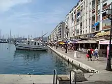 - the water of the port is very calm, because it is protected by a peninsula (Saint-Mandrier) that nearly closes the port as a lagoon. It was possible to watch boats entering the port from there.