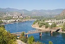 Trail is a small city of 7,700 people (2016) in the West Kootenays region of interior southeast British Columbia. The city is about 10 km north of the USA border at Waneta and about 25 km from Castlegar, a town also on the Columbia River. Another neighbouring community is Rossland. The main employer in Trail and the most prominent feature on the city's skyline is the smelter operated by Teck Cominco.