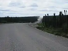 The Cartwright Access Road remains unpaved gravel. Similarly, Quebec Route 389 from Hydro-Québec's Manic 5 hydroelectric station to the start of the Trans-Labrador Highway at Fermont/Labrador City is little more than a primitive gravel logging/mining road with no towns. The only services between Manic 5 and Fermont are at Relais-Gabriel, which has fuel, a restaurant, motel and outfitter's camp. The next fuel is 250 km away.