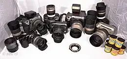 People with several interchangeable lenses may carry two camera bodies, or sometimes even more. In film days this usually meant two with different film; today it may mean two digital cameras or a digital and a film body.