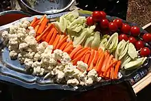 Crudités (though in a much smaller portion) are a kind of low-salt item you may be served on a plane — that is, they are low-salt as long as you do not add any of the dip or dressing you'll likely be given along with these vegetables