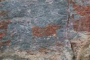 - Rhino Cave. Located at the north end of the Female Hill and has two main walls where paintings are located. The white rhino painting is located on the north wall split by painting of a red giraffe. Excavations of the cave floor have revealed a fair amount of lithic materials.