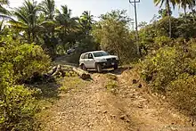Locals may joke that you can get to the beach on foot in 20 minutes. Now, the distance as the crow flies is 5 km, and the sand track is 9 km in length descending 70 m in altitude through the jungle. The track is often damaged by heavy rainfall. If it's not too ruined it can be driving on an all-wheel driven vehicle. Otherwise you could walk or ride a mountain bike - bring enough drinking water.