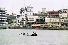 Tuxpan (officially Túxpam de Rodríguez Cano) is a city of 90,000 people (2020) in Veracruz on the banks of the Tuxpan River, which reaches the Gulf of Mexico 11 km (6.8 mi) downstream. Being the nearest port to Mexico City, Tuxpan is an important commercial link for Mexican imports and exports and home to a naval base.