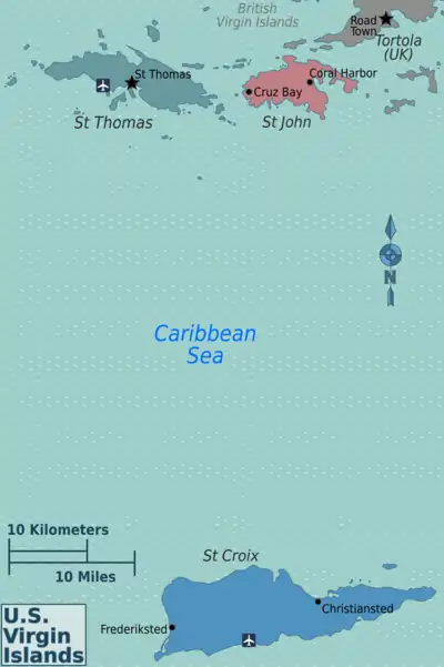 The U.S. Virgin Islands (USVI) constitute an unincorporated organized territory of the United States of America between the Caribbean Sea and the North Atlantic Ocean, east of Puerto Rico. Together with the British Virgin Islands, to the northeast, the territory forms the Virgin Islands archipelago. The islands' natural resources are sun, sand, sea, and surf.