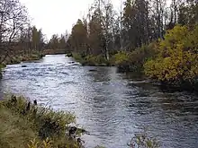 The next leg is 15 km, to 🌍 Jussinkämppä, then 8 km to 🌍 Ansakämppä, 7 km to 🌍 Oulanka Visitor Centre ☏ +358 20-639-6850 and 3 km more to the commercial campsite (🌍 Oulangan leirintäalue ☏ +358 44-740-0001; also cottages, showers and a kiosk). The next legs are 7 km to 🌍 Taivalköngäs (with a 9-km connection to the 🌍 Ristikallio trailhead; wilderness hut also at 🌍 Ristikallio), 3 km to 🌍 Savilampi (also with a connection to a trailhead, 1.5 km), and then 14.5 km to the Hautajärvi trail gate and its information point. The 🌍 Rytiniva shelter is 0.5 km before the Karhunkierros gate and the highway. The village 🌍 Hautajärvi is to the south; the UKK trail continues across the road 500 m northward.