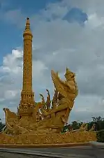 - Thung Si Muang Park (ทุ่งศรีเมือง). At the centre of town in front of city hall, this pleasant little park has several points of interest. A bright yellow elaborately carved candle sculpture, completed in 2000, standing 22 m tall and dedicated to the king, showcases Isaan art styles and has become the symbol of the city. The candle is placed on a junk, with a garuda eagle at the bow and a naga serpent around it. A statue of Phra Phatumvoraratsuriyawang commemorates the tersely-named founder of the town. Monument of Goodness (อนุสาวรีย์แห่งความดี), built by WWII POWs to honour the generosity and goodness of the people of Ubon Ratchathani.
