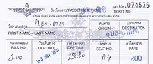 Ubon is less than 100 km from the Lao border at Chong Mek/Pakse. A regular 'international' bus service now operates twice daily direct from Ubon bus station (near the "Big C" shopping complex) to Pakse in Laos, and caters for travelers who wish to obtain a Lao visa on arrival (it waits for all passengers to complete immigration and visa formalities before continuing to Pakse). The fare is 200 baht if purchasing tickets to Pakse at Ubon bus terminal. Agents selling tickets in Pakse charge 90,000 kip for the other direction (about 50% more), though this includes pickup from downtown Pakse. The price may be cheaper if you purchase directly at the bus station on Pakse's eastern outskirts.