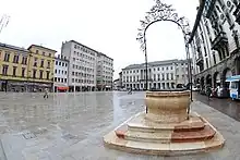 - Piazza Liberta'. At the foot of the Castle hill is Piazza Liberta', which the tourist office calls the "most beautiful square in Venetian style on earth". Here you find the Loggia del Lionello, built in the 1400s, and across the street, the Tower of the Two Moors, giant statues (similar to those in St Mark's Square in Venice) on either side of a huge bell. They ring the hours.