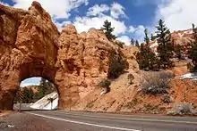 A road goes through a sandstone arch in Dixie National Forest