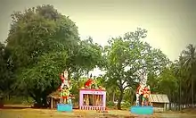 - Pidaariyamman Kovil & Thiruvizha (Hindu Temple): This is a big and famous temple at Valasai. Every Friday and Special pooja day lots of people are coming to this temple. The famous festival (in Tamil called Thiruvizha) on this temple celebrated every three years. This festival is celebrated for about 17 days. It is not just a Temple ritual, but is a grand festival for the whole village. Around 30 village peoples nearby this place will come with their families and celebrate. It begins with Kaappu Kattuthal and concludes with Poo Palaku (procession in flower decorated pallaku). On each day, the Amman (the Deities) will be nicely decorated and taken in procession, once in the morning and once in the evening. All the schools will be closed for a week. Kids are very excited and eagerly waiting for this week. They have a lot of fun like Giant Wheel, Balloon Shooting for Kids, On the spot Toys Store, Music Shows, Dance Shows every night, etc. The temple was started in 1972. The ladt Village Festival ("Kovil Thiruvizha") was celebrated in August 2014.