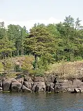 Valaam (Russian: Валаам or Валаамский архипелаг), Finnish and Swedish: Valamo) is an archipelago in the northern part of Europe's biggest lake, Ladoga. It consists of 50-some islands with a combined area of 36 km2 (14 sq mi). Valaam is also the name of the largest island. The name of the island is from the Finno-Ugric word valamo, which means the high, mountain, ground.