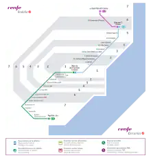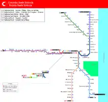Cercanias Valencia commuter rail services in the Valencia and Castellon metropolitan areas.