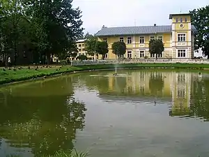 - 🌍 Library and pond (Keskraamatukogu), Aia 12. The building of the library was constructed in 1902 as a manor house. Therefore it also includes a park and a small pond. The style of the building is difficult to determine: it is quite an original.