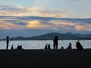 - π Kitsilano Beach (Kits Beach). It's the sandy beach for the young to hang out and be seen at. Kits beach also features beach volleyball courts and a large public swimming pool. Popular in the summer, the salt water pool is 137.5 m in length and runs along the ocean's edge.