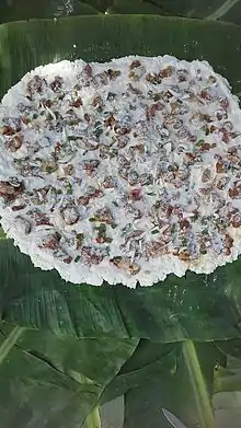 Tuluk is a variation of lap lap with the cake rolled into a cylinder with meat in the middle. It tastes a lot like a sausage roll. You can find these again in the market (usually from mele village people) but they will be served from foam boxes to keep them warm.