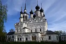Veliky Ustyug has a rich, well preserved collection of religious architecture in the "Northern Baroque" style.