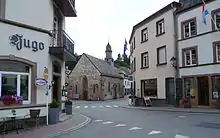 - Hotel Heintz, 55, Grand Rue, ☏ +352 83 41 55. The service is great in this well-maintained, family-run hotel. It's a quaint little place with about 30 good rooms. The ones on the south side of the building have little balconies. The back garden terrace is very pleasant and although there's no restaurant, they serve drinks for guests and a good breakfast in the morning. Note that the hotel closes in low season, between November and April. Private parking costs €7 for a day. From €65 for a double, breakfast €8.50.