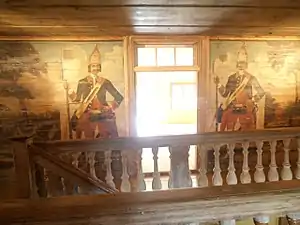 - 🌍 Ungurmuiža Manor, Ungurmuiža, Raiskuma pagasts (15 km northwest from Cēsis), ☏ +371 22007332, info@ungurmuiza.lv. May–Sep Tu–Sa 10:00–18:00, Su 10:00–16:00. A very small manor with its main attraction, a wooden baroque manor house from 1732. Of course, separately, there are more than enough wooden houses and baroque monuments all over Latvia. However, in combination, something like it can only be found here. As it was common in the 18th century, the house was painted in the style of Baroque. The paintings were done directly on the logs preserving their texture. Thus, parallels exist with the painted wooden house of Khvalynsk in Russia, and other very few monuments of the same style. The paintings are neither abstract nor primitive, but full of honesty. Besides a slant in serene Italian landscapes, they are absolutely anecdotally, like the portraits of Peter the Great in the form of a grenadier.