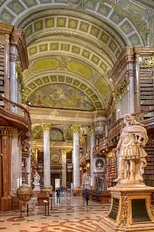 - 🌍 Prunksaal (State Hall), Josefsplatz 1, 1st Floor, ☏ +43 1 534 10-394, fax: +43 1 534 10-257, oeffentlichkeitsarbeit@onb.ac.at. Tu W 10:00-18:00, Th 10:00-21:00, F Su 10:00-18:00. This magnificent historic library was designed by Johann Bernhard Fischer von Erlach and built in 1726. As well as the spectacular room itself, you can see temporary exhibitions on various historical subjects. €7 (adults), €6.30 (Ö1 Club and Vienna Card), €5.50 (seniors), €4.50 (students/military/disabled).