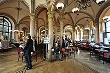 - 🌍 Café Central, Herrengasse 14 (corner of Strauchgasse), ☏ +43 1 533 37 63, cafe.central@palaisevents.at. M-Sa 07:30-22:00, Su 10:00-22:00, live pianist daily 17:00-22:00. One of the most famous Vienna coffee houses, which opened in 1876, has been authentically restored. Beautiful premises inside the Palais Ferstel, it is too touristy and a bit more expensive for having a meal, but can be worth it for a cup of coffee. There is an occasional pianist that is delightful to hear, and a good non-smoking section.