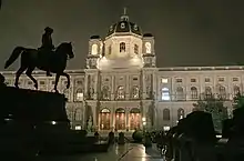 - 🌍 Heldenplatz (Heroes' Square). A public space in front of the Neue Hofburg, setting to a number of important historic events, most notably of Adolf Hitler's 1938 announcement of the Austrian Anschluß. Two 19th-century equestrian statues portray Archduke Charles of Austria-Teschen and Prince Eugene of Savoy.