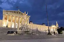 - 🌍 Parlamentsgebäude (Parliament Building), Doktor-Karl-Renner-Ring 3, ☏ +43 1 401 10-2400, fax: +43 1 401 10-2664, tours@parlament.gv.at. Visitor Center: M-Sa 09:30-16:30; tours only when not in use by Parliament. The home of the two houses of Austrian Parliament. The building was designed by Theophil von Hansen in the Neoclassical style, and constructed between 1873 and 1883. Guided tours are offered in German or English. Tours: €5 (adults), €2.50 (seniors/students/disabled), free (children and youth under 19); Visitor Center free.