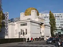 - 🌍 Wiener Secession (Secession Building), Friedrichstraße 12 (U-Bahn U1, U2, U4 Karlsplatz), ☏ +43-1-587 53 07, fax: +43-1-587 53 07-34, office@secession.at. Tu-Su 10:00-18:00; guided tours Sa 15:00, Su 11:00 and by appt. Architect Josef Maria Olbrich built this Jugendstil (German-style Art Nouveau) building 1897-98 as a display space for artists working in the new Secession artistic movement. It is topped by a giant, frothy golden ball, lovingly called Krauthappel by the Viennese, but the building was definitely not loved when it first opened. Notice a reactionary Viennese pattern here? The opera building too was hated at first, but at least it was not called a "temple for bullfrogs" or "a bastard begot of temple and warehouse" as this building was. The entryway features the motto of the Secessionist movement: Der Zeit ihre Kunst, der Kunst ihre Freiheit (to the time, its art, to the art, its freedom). Olbrich's mentor Otto Wagner, and also Gustav Klimt, whose astounding Beethoven Frieze is partially preserved in the basement, inspired the building's design. The ceremonial front entrance is separate from the functional glass and steel exhibit hall in back. Beethoven Frieze + special exhibits: €8.50 (adults), €5 (seniors/students); special exhibits: €5 (adults), €4 (seniors/students); guided tours: €3.