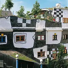 - 🌍 KunstHausWien (Vienna House of the Arts), Untere Weißgerberstrasse 13 (Tram O/N Radetzkyplatz), ☏ +43-1-712 04 91, info@kunsthauswien.com. Daily 10:00-19:00. Even an avowed hater of modern art can appreciate this. This is Hundertwasser's (born Friedrich Stowasser in 1928) major contribution to the Viennese art world. In a time when artists often try to shock the public or merely impress other members of the rarefied gallery subculture, Hundertwasser's KunstHausWien would be a bastion against the dictatorship of the straight line, the ruler and T-square, a bridgehead against the grid system and the chaos of the absurd. Starting with the façade of the building, adapted from its prior life as a furniture factory, there is a Gaudi-in-Barcelona feel to the place. Windows peek out like eyes from curvy, rounded plaster and colorful paint. It is a Disneyland for grownups. €10 (adults), €8 (seniors/students/handicapped/military), €5 (children 11-18).