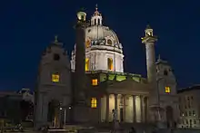 - 🌍 Karlskirche (St Charles' Church), Kreuzherrengasse 2, kontakt@karlskirche.at. M-Sa 09:00-12:30, 13:00-18:00; Su and holidays 12:00-17:45. Largest Baroque church north of the Alps, designed by the famous architect Bernhard Fischer von Erlach. Frescos done by Michael Rottmayr and paintings from the Italian Baroque painters Sebastiano Ricci and Giuseppe Antonio Pellegrini, and the Austrian painter Daniel Gran. €8 (adults), €4 (students), free (children under 10).