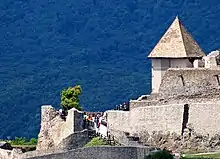 - 🌍 Castle of Visegrád (Visegrádi vár), ☏ +36 6-26-398-101, visegrad@pprt.hu. Jan Feb: F–Su 10:00–16:00; Mar Oct: 09:00–17:00; Apr–Sep 09:00–18:00; Nov: 09:00–16:00; Dec: F–Su 10:00–15:00. After the Mongol invasion, King Béla IV of Hungary and his wife had a new fortification system constructed in the 1240–1250s near the one destroyed earlier. The first part of the new system was the Upper Castle on top of a high hill. The castle was laid out on a triangular ground plan and had three towers at its corners. In the 14th century, at the time of the Angevin kings of Hungary, the castle became a royal residence and was enlarged with a new curtain wall and palace buildings. Around 1400 King Sigismund had a third curtain wall constructed and enlarged the palace buildings. At the end of the 15th century, King Matthias Corvinus had the interior renovated. The Upper Castle also served for the safekeeping of the Hungarian royal insignia between the 14th century and 1526. In 1544 Visegrád was occupied by the Ottoman Empire, and, apart from a short period in 1595-1605, it remained in Turkish hands until 1685. The castle was seriously damaged by the Turks and was never used afterwards. The castle is now open to the public to visit. Adult: 1700 Ft; senior, student: 850 Ft.