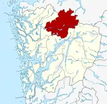 - Route E16 via Arna and Dale (100 km, 1 hr 20 min)