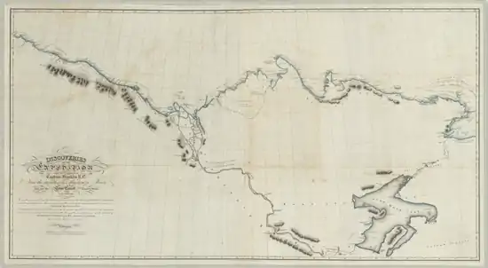 Franklin's first command was aboard HMS Trent in the 1819 Svalbard expedition commanded by Captain David Buchan on HMS Dorothea. Believing in the "Open Sea" theory, and in a clean route through the Pole to Bering Strait, they left the Shetlands on their less-than-optimal ships, predictably encountered impassable ice beyond Svalbard, and turned back. Not much later after, Franklin was chosen to lead the Coppermine expedition overland from Hudson Bay to chart the north coast of Canada eastwards from the mouth of the Coppermine River. It was, by any objective standard, a disaster: Franklin completely failed in his goal of mapping a sufficient portion of the Arctic coast, only 800 km (500 mi) having been explored before the party was forced to turn back. Once he fell into the Hayes River at Robinson Falls, being rescued by a member of his expedition about 90 m (300 ft) downstream. Between 1819 and 1822, he lost 11 of the 20 men in his party. Most died of starvation, but there was also at least one murder and suggestions of cannibalism. The survivors were forced to eat lichen and even attempted to eat their own leather boots, which gained Franklin the nickname of "the man who ate his boots"