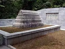 - Zheng He's Tomb in the southern edge of Niushou Mountain has been repaired and a small museum built next to it, although his body was buried at sea off the Malabar Coast in western India. It was built to commemorate the 580th anniversary of his voyages. In front of the tomb are 28 steps divided into four groups and seven layers, representing Zheng He’s seven voyages which lasted for 28 years. His sword and other personal possessions were interred in a Muslim tomb inscribed in Arabic. The tomb of Zheng He's assistant Hong Bao had been unearthed in Nanjing, as well.