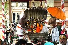 - Rangji Mandir. The single largest temple in Vrindavan, built in 1851 in a South Indian style, complete with intricate seven-story gopuram (gateway) at the entrance. Inside is a 50-ft high wooden chariot, taken out yearly for festivals, and in the inner courtyard is the 50-ft high gold-plated pillar known as Dhwaja Stambha.