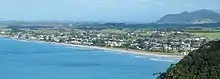 Waihi Beach, viewed from north on the coastal walk to Orokawa