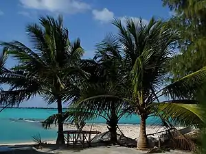 The island does not have a navigable harbor; the lagoon is cut off from the ocean by a coral reef, and itself is rarely deeper than a few meters at high tide.