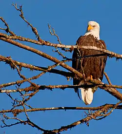 The San Juan Islands are in the Pacific coast flyaway which extends from Alaska to South America and almost 300 species of birds have been observed on the islands. The islands offer an extensive variety of environments from rocky sea shores to lush wetlands offering a large number of habitats for birds in a relatively compact area including the nature reserve on Waldron Island. The San Juan Audubon Society holds regular meetings, bird counts and postings of bird activity on their website . Bald Eagles, Great Blue Heron, Kingfishers and Cormorants are all common sites on the islands but rare birds are sometimes seen migrating through the area.